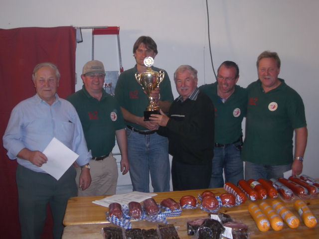 Unser Bild zeigt Turnierleiter und Bürgermeister Josef Englbrecht, Hermann Huber, Konrad Wittmann, Pokalspender Franz Bauer, Jakob Kern und Jochen Rost.