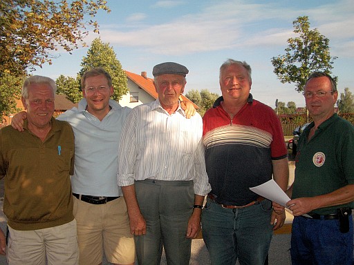 Unser Bild zeigt Hermann Hargasser, Rudi Hargasser, Josef Schweiger, Edi Engel sowie Jakob Kern. Die weiteren Plätze belegten: 5. Grünthal (10:14, 1,059); 6. Guttenburg (6:18, 0,596); 7. Damen Wanglbach (2:22, 0,361).