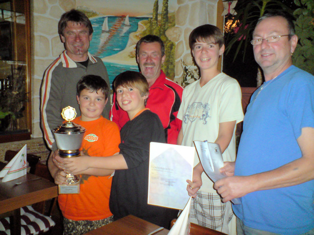 Groß war die Freude natürlich bei den jüngsten Teilnehmern, die bei der anschliessenden Siegerehrung im Ristorante Salento den Wanderpokal sowie einen Essensgutschein empfangen durften. Die Mannschaft Bauwagen mit Thomas Heindl, Florian Rückerl, Daniel Ecker und Mario Heiberger konnte sich über einen kleinen Trostpreis freuen.