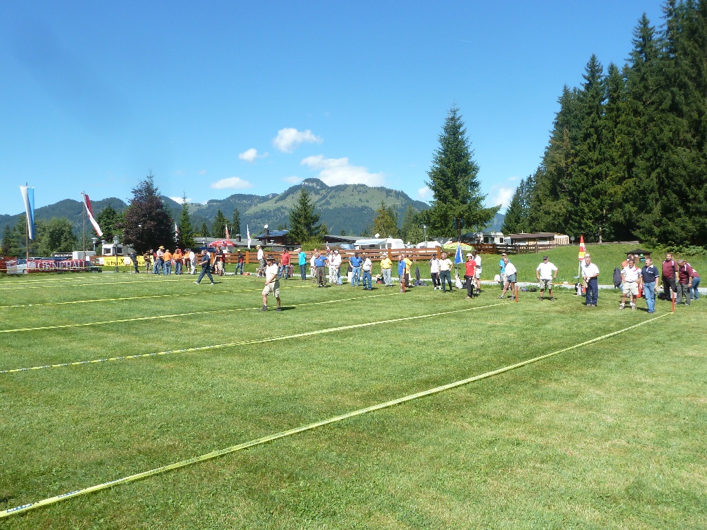 Die Temperaturen lagen zwar morgens um 9 Uhr noch bei 8°C, aber nach Beginn des Turnieres lockerte sich die Wolkendecke und die Berge um den Turnierplatz erstrahlten in hellstem Sonnenschein. Das Turnier fand in drei Gruppen zu je 16 Mannschaften im Modus ohne Feld auf 18 m statt.