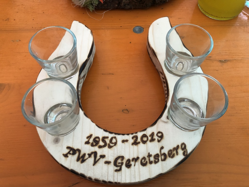 Anläßlich des Jubiläum erhielt jede Mannschaft ein hölzernes Hufeisen mit 4 Schnapsgläsern als Erinnerungsgeschenk.