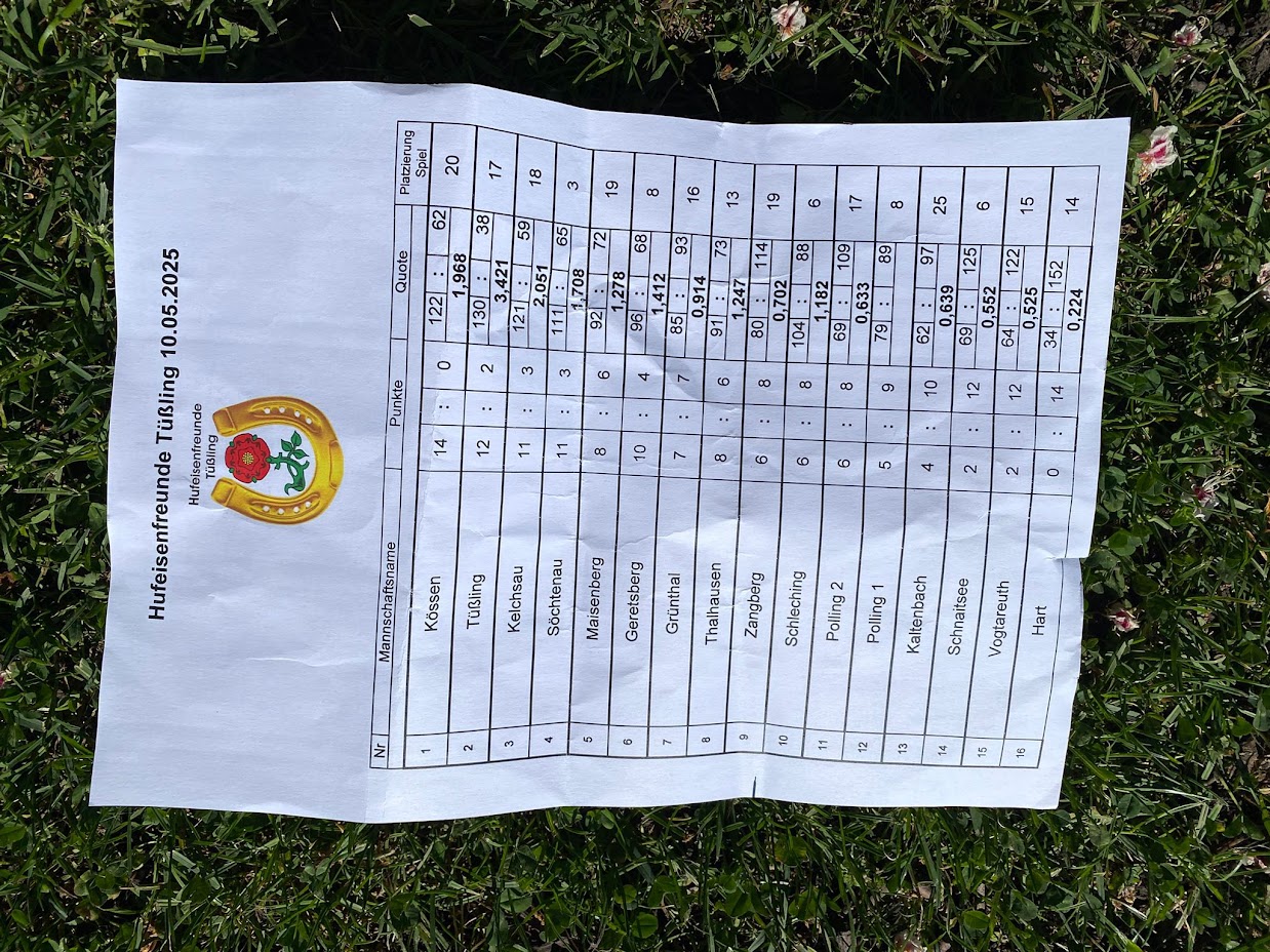 In Tüssling holte die Zangberger Morschaft zum Saisonstart mit 6:8 Punkten den 9. Platz. Der 1. Platz ging an Kössen mit 14:0 Punkten vor den Hausherren Tüssling und Kelchsau.